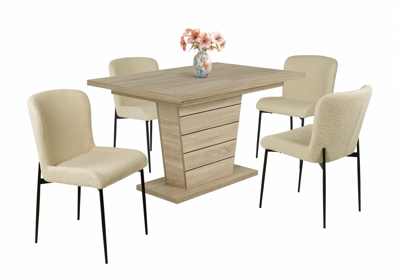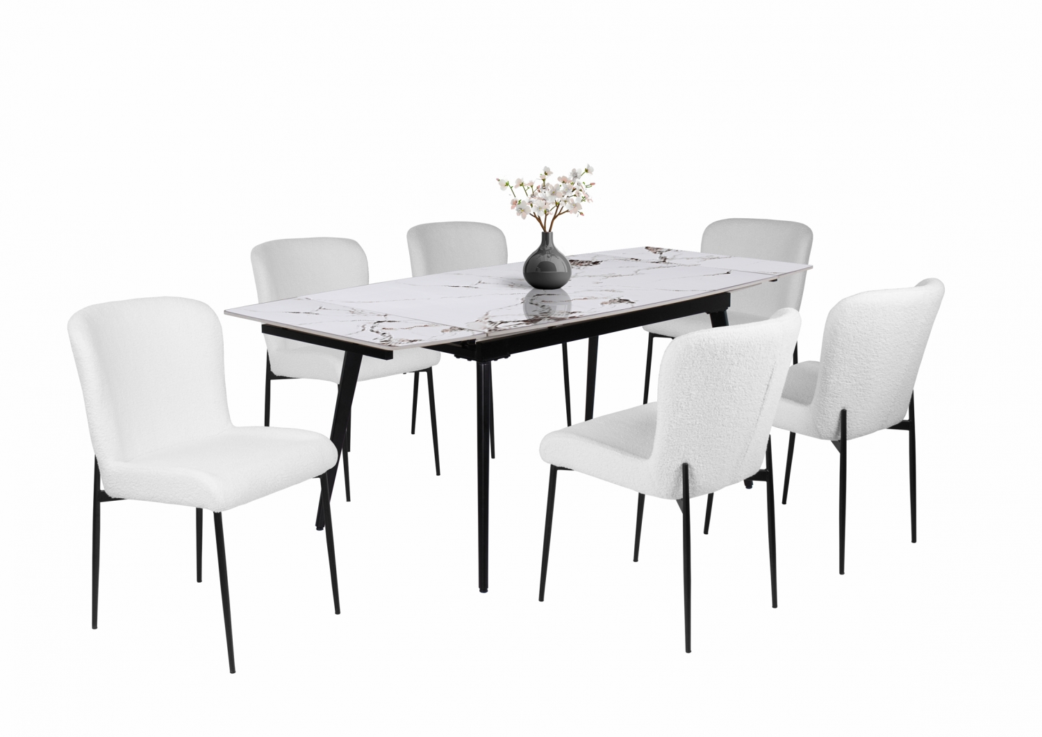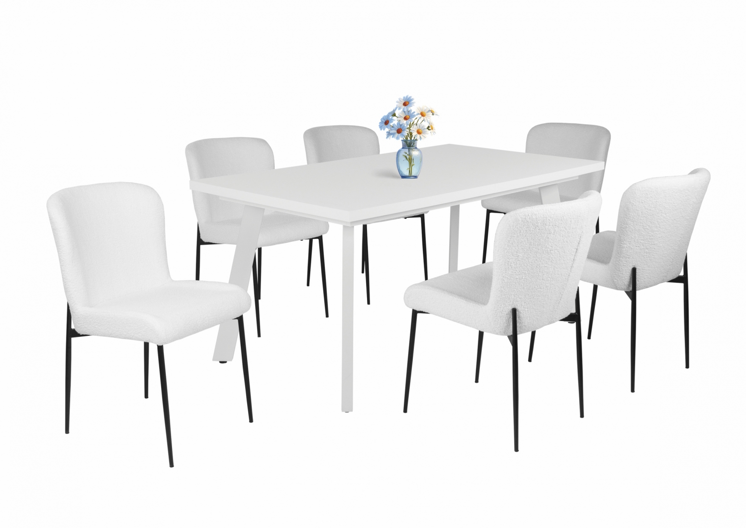 Buklé szövet kárpittal és fekete porfestett fém lábakkal készült Blanka székünk 4 színben kapható: fehér, beige, szürke és barna. Kellemes árnyalataiknak köszönhetően jól kombinálhatóak a konyhai bútorzattal, asztalokkal.