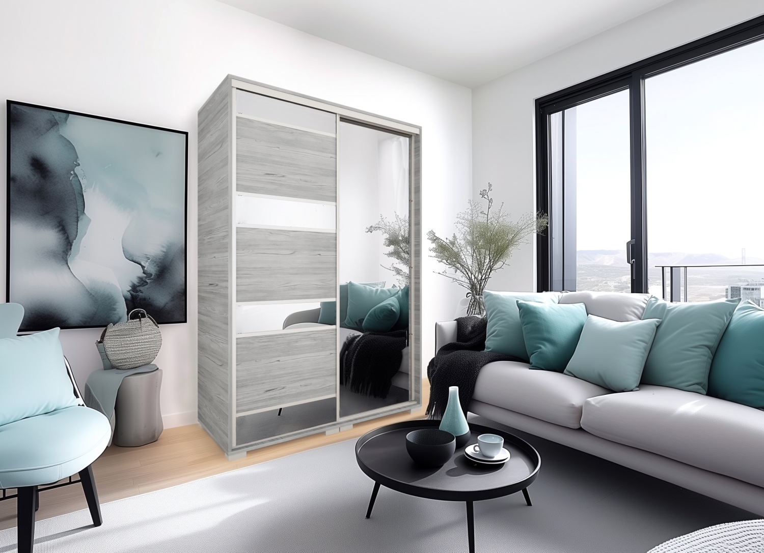 Memphis-A tolóajtós gardób 2 Vállfás - 3 Polcos