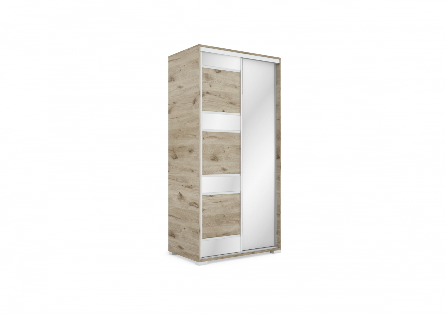 Termékleírás:- 18 mm vastag forgácslap - Nem lapra szerelt (késztermék), így nem igényel plusz költséget az összeszerelés - Köldökcsapos ragasztott technológiával összeállítva (nem forgácslap csavarral) - ABS élzárás - 3 mm HDF hátfal lemez - Fém polctartók - Állítható, szintező lábak Magasság: 202 cm Szélesség: 100 cm Mélység: 60 cm A szekrény könnyen működtethető az alumínium sínes tolóajtós rendszerrel, ami állítható, rugós, csapágyas, gumírozott kivitelű tolóajtó görgőkkel van ellátva, a halk és könnyed működésért. A termék alap elrendezése vállfás-3 polcos. Lehetséges rendelésre Vállfás- Fiókos - Polcos elrendezésben is- az opcióknál feltüntetve.