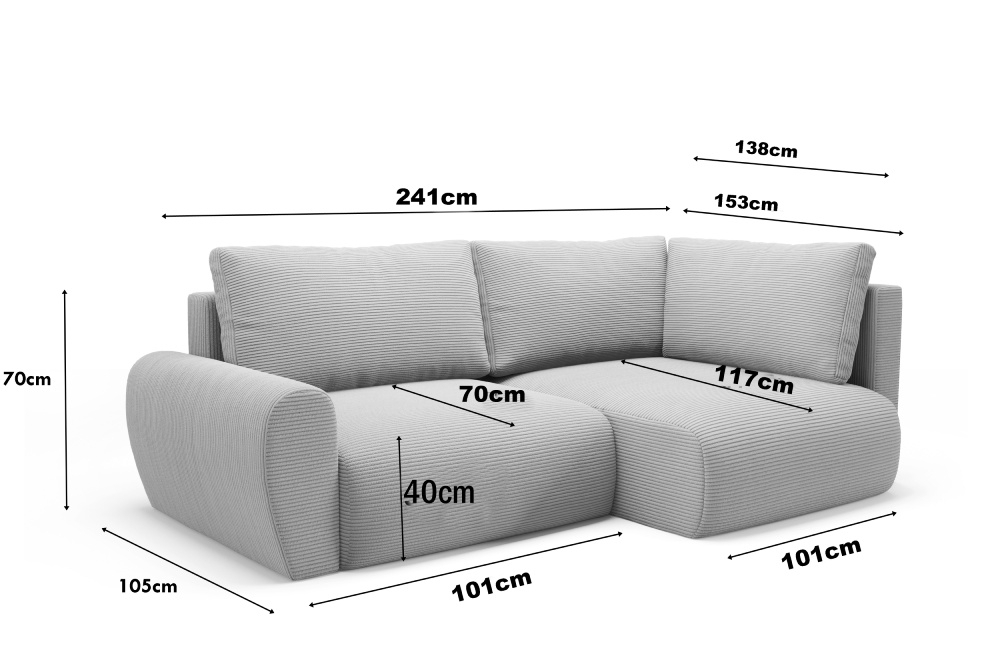 A SORO szövet vastag és masszív. Kimagasló kopásállósága mellett, nehezen éghető anyagként hitelesített és a REACH tanúsítványnak is megfelelt. OEKO-TEX tanúsítványa biztosítja arról, hogy gyermekek és csecsemők számára is biztonságos, bőrbarát nem okoz irritációt.Külső szélesség: 285 cmKülső mélység: 193 cmFekvőfelület szélessége: 210 cmFekvőfelület hossza: 160 cmÜlőmagasság: 50 cmBeülőmélység: 80 cmTeljes magasság: 80 cmBeülőmélység (párnával): 60 cm