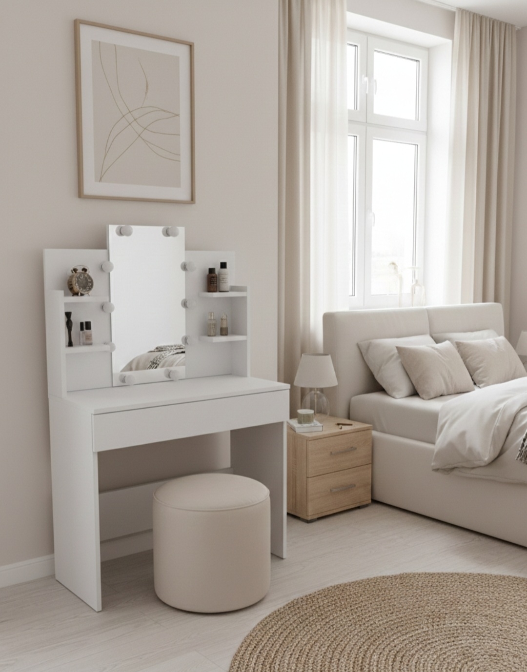 Sminkasztal 90 cm fiókos, Led lámpás Hollywood